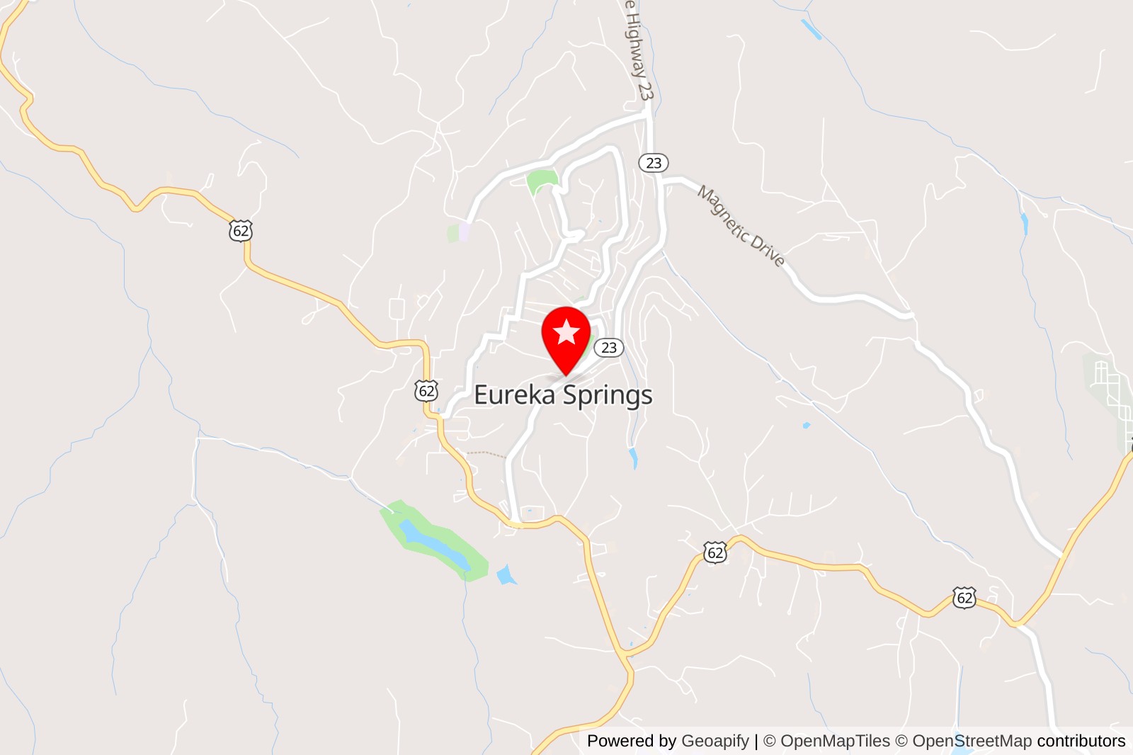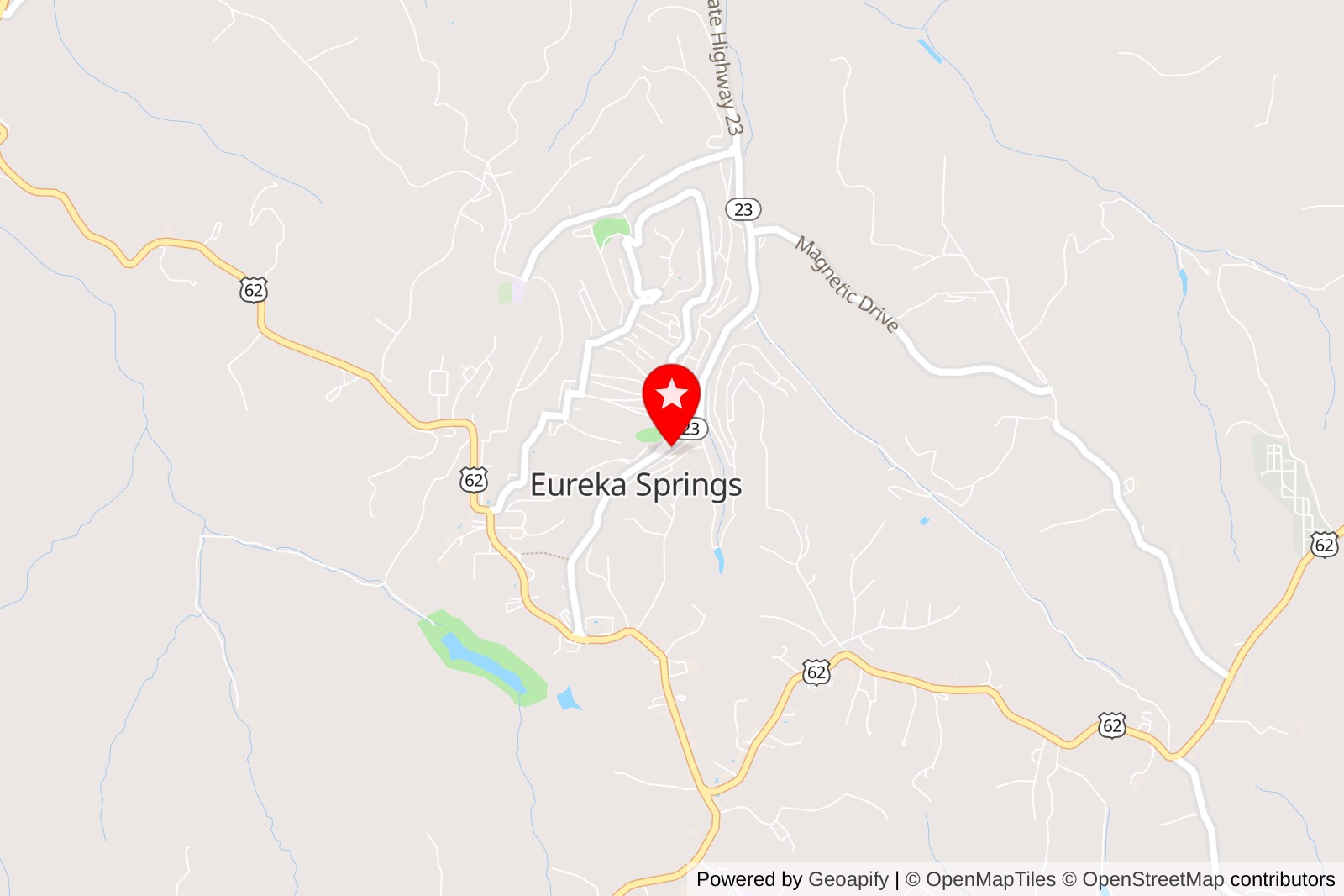 Location: 61 S Main St, Eureka Springs, AR 72632